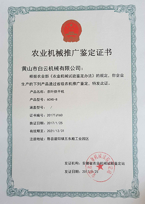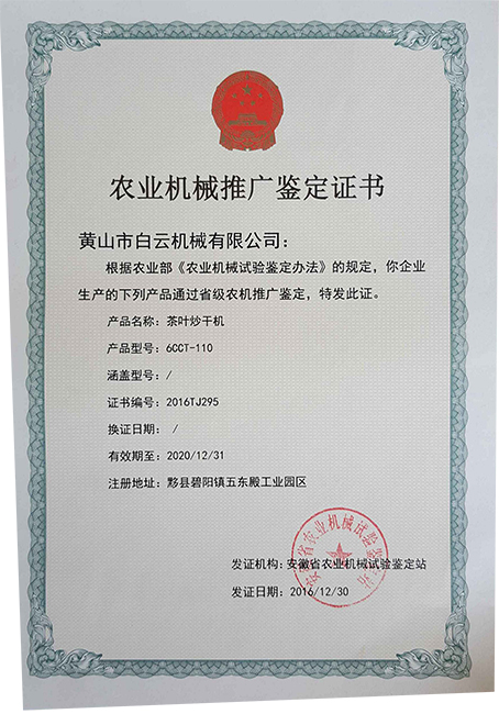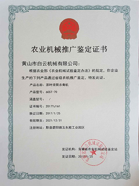 茶葉滾筒殺青機(jī)-鑒定證書(shū)
