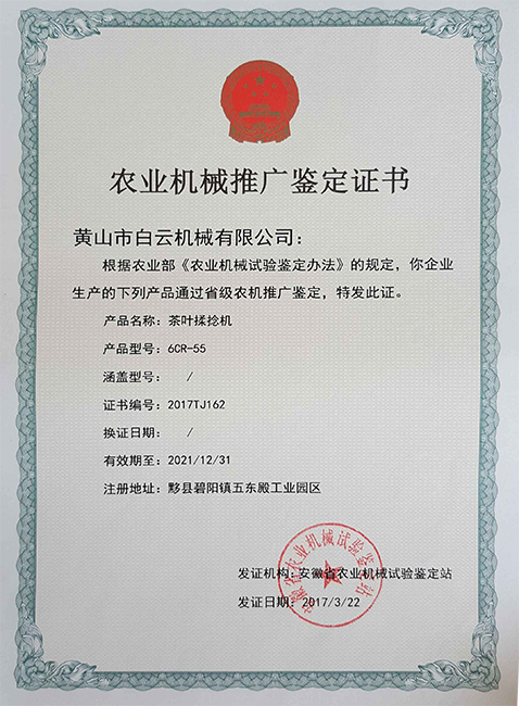茶葉揉捻機(jī)-鑒定證書(shū)